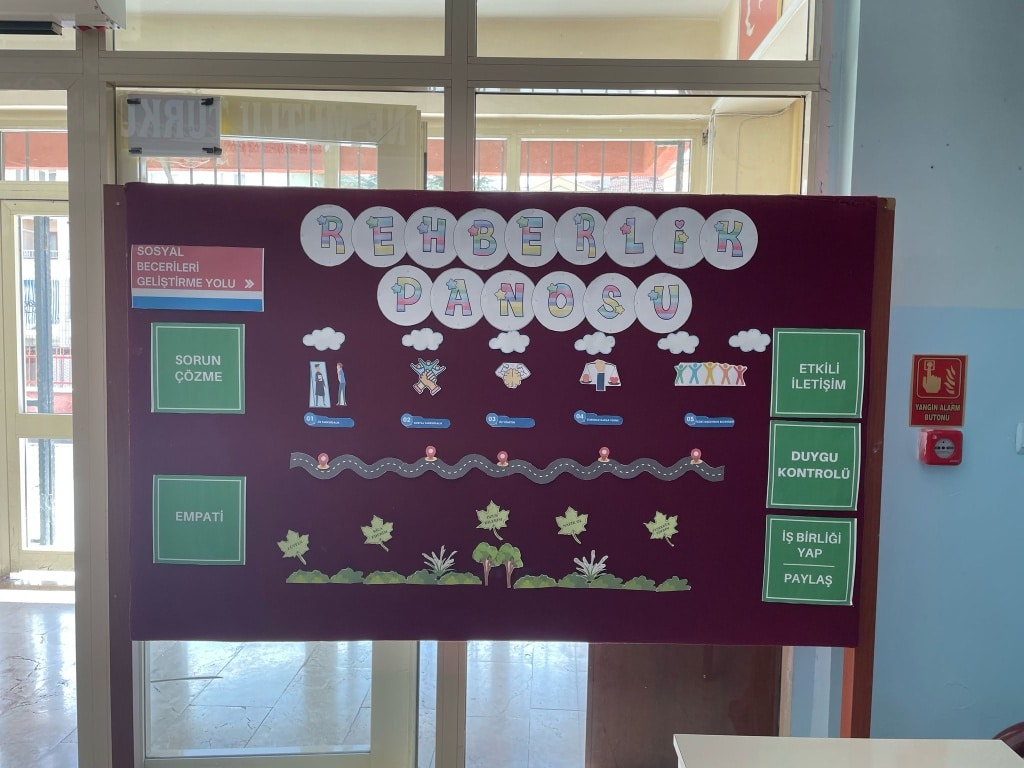 SOSYAL BECERİLER KONUSU İLE İLGİLİ PANO ÇALIŞMASI YAPILMIŞTIR.
